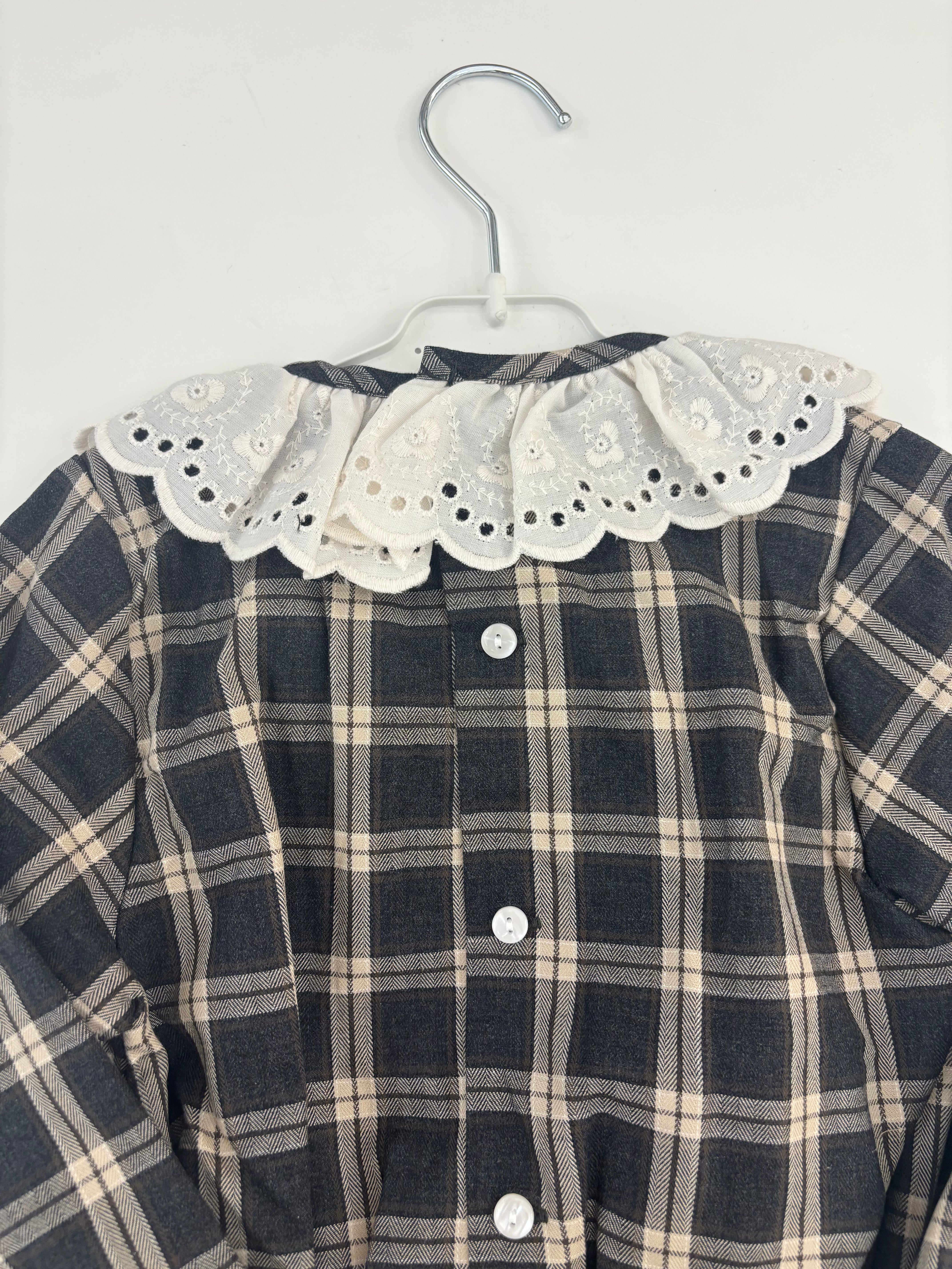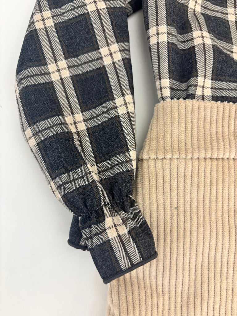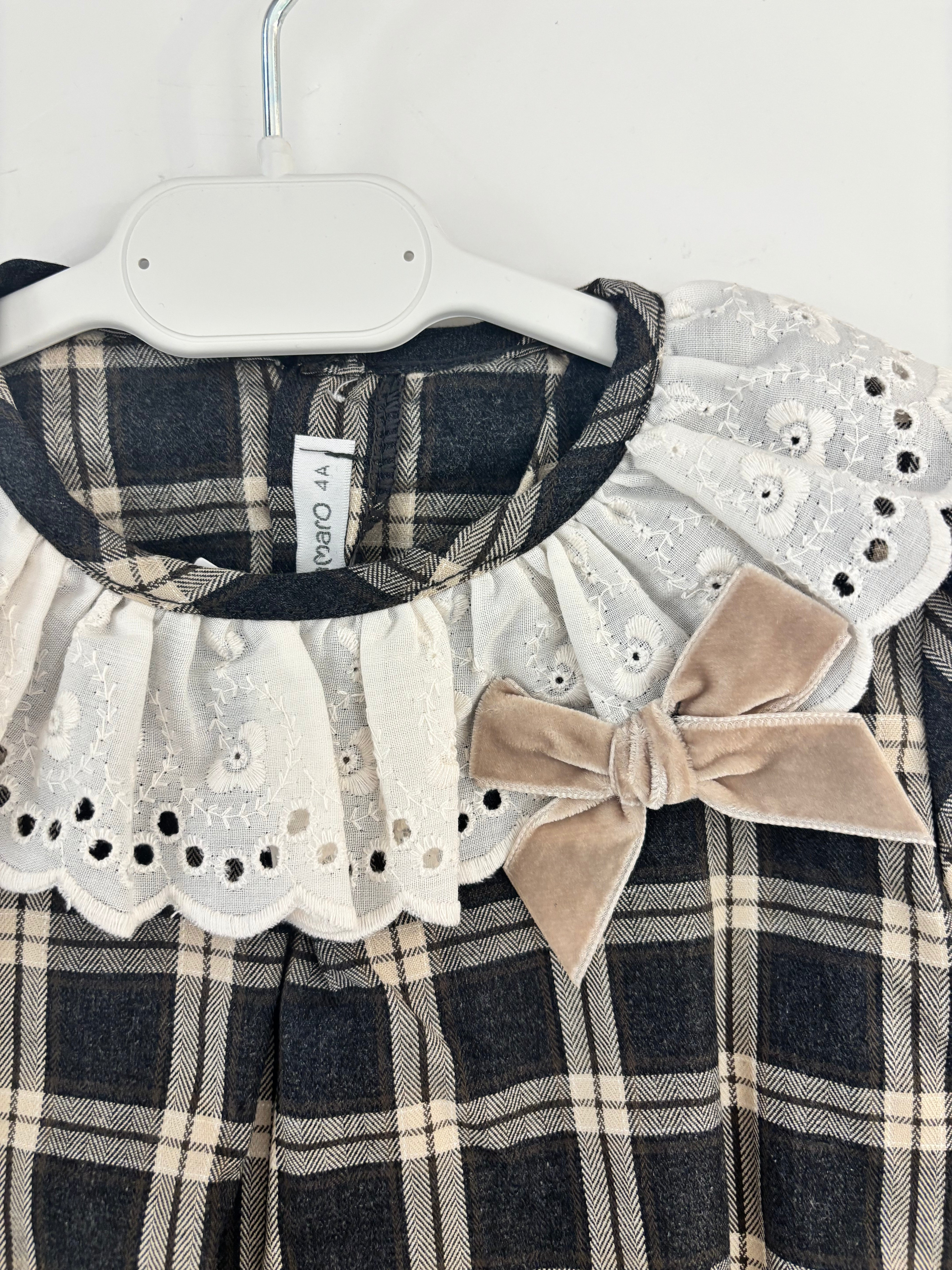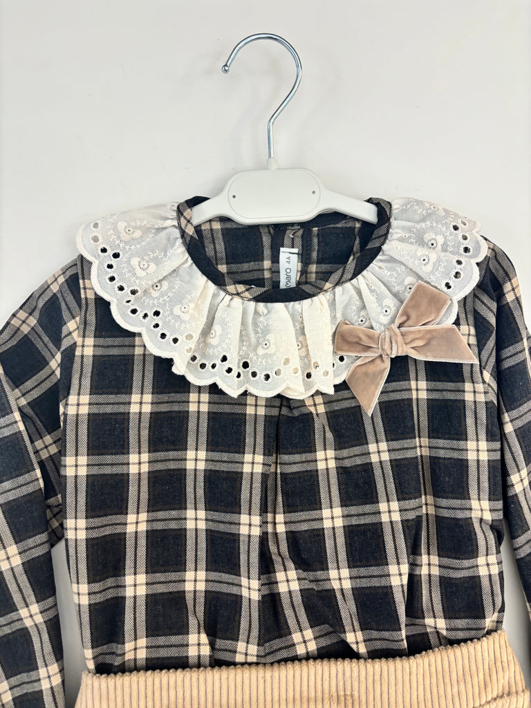 Camicia a quadri con colletto froufrou e fiocchetto in velluto