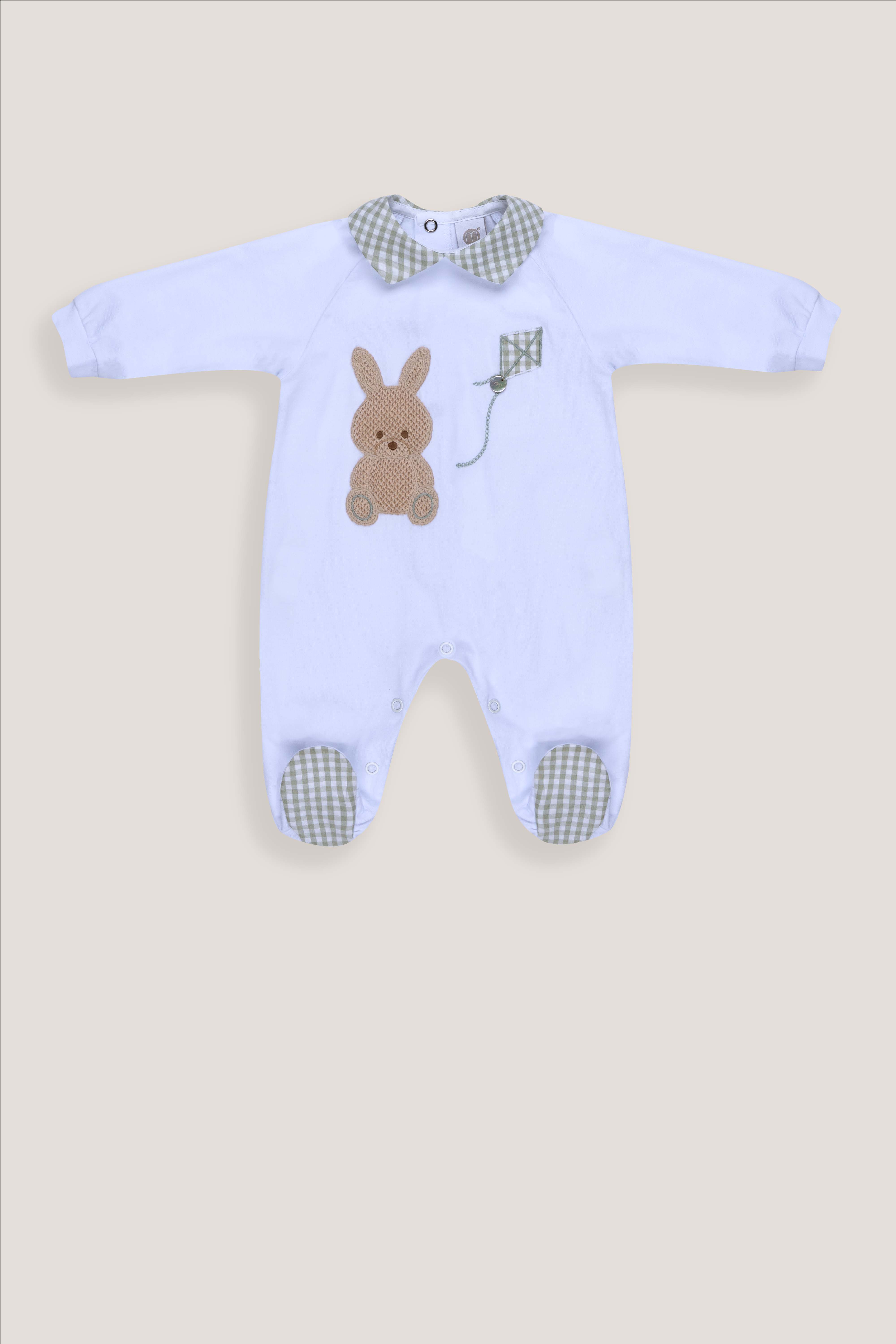 Tutina manica lunga in jersey con colletto quadretti e coniglietto