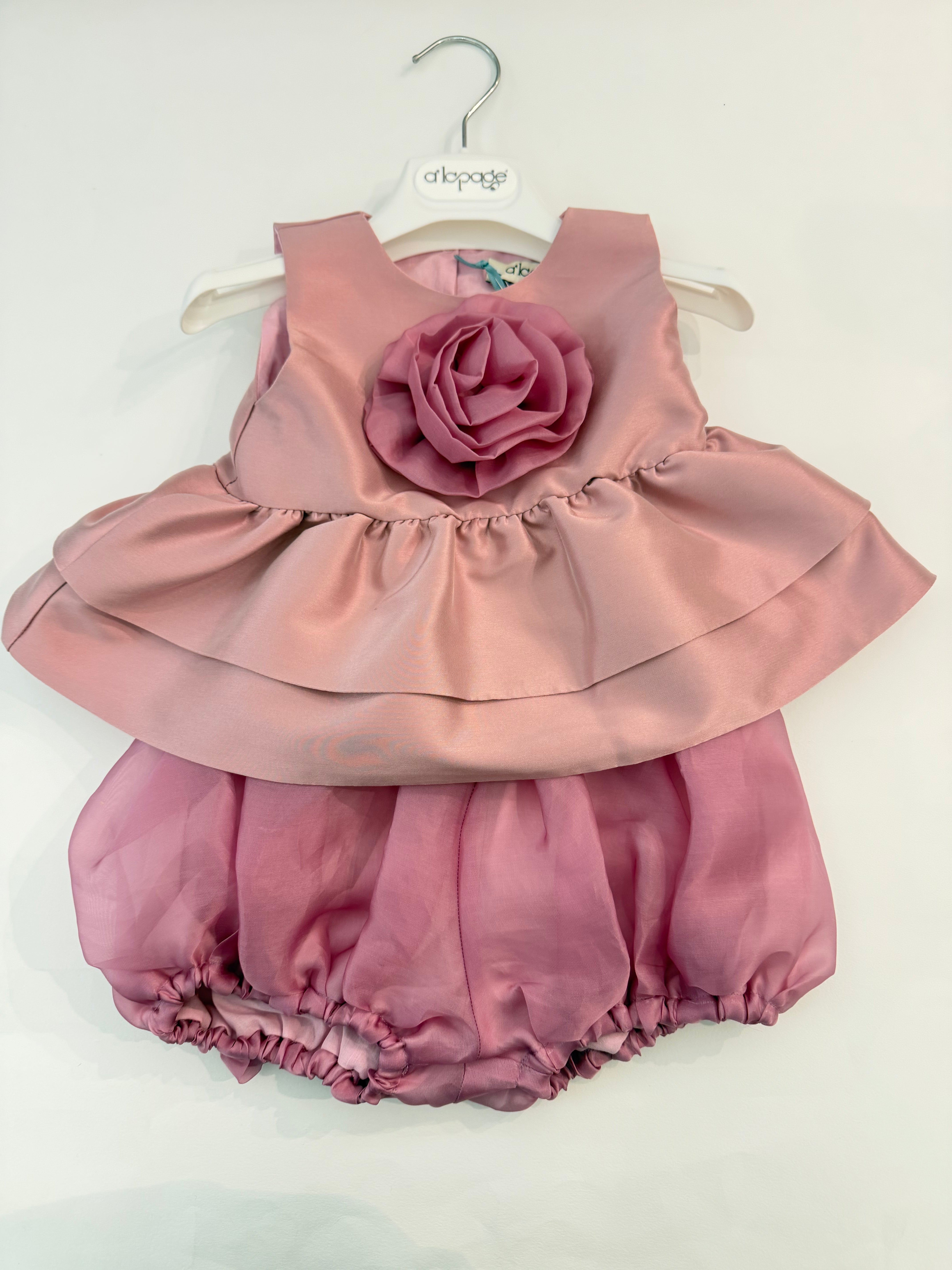 Top in raso con fiore in organza di seta