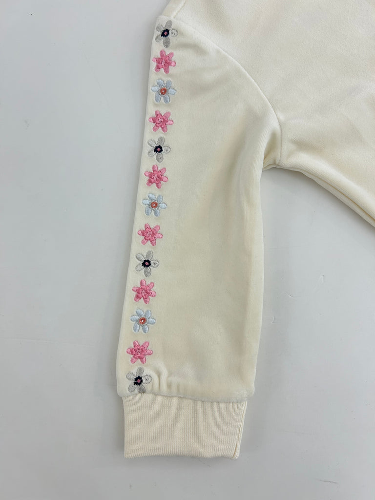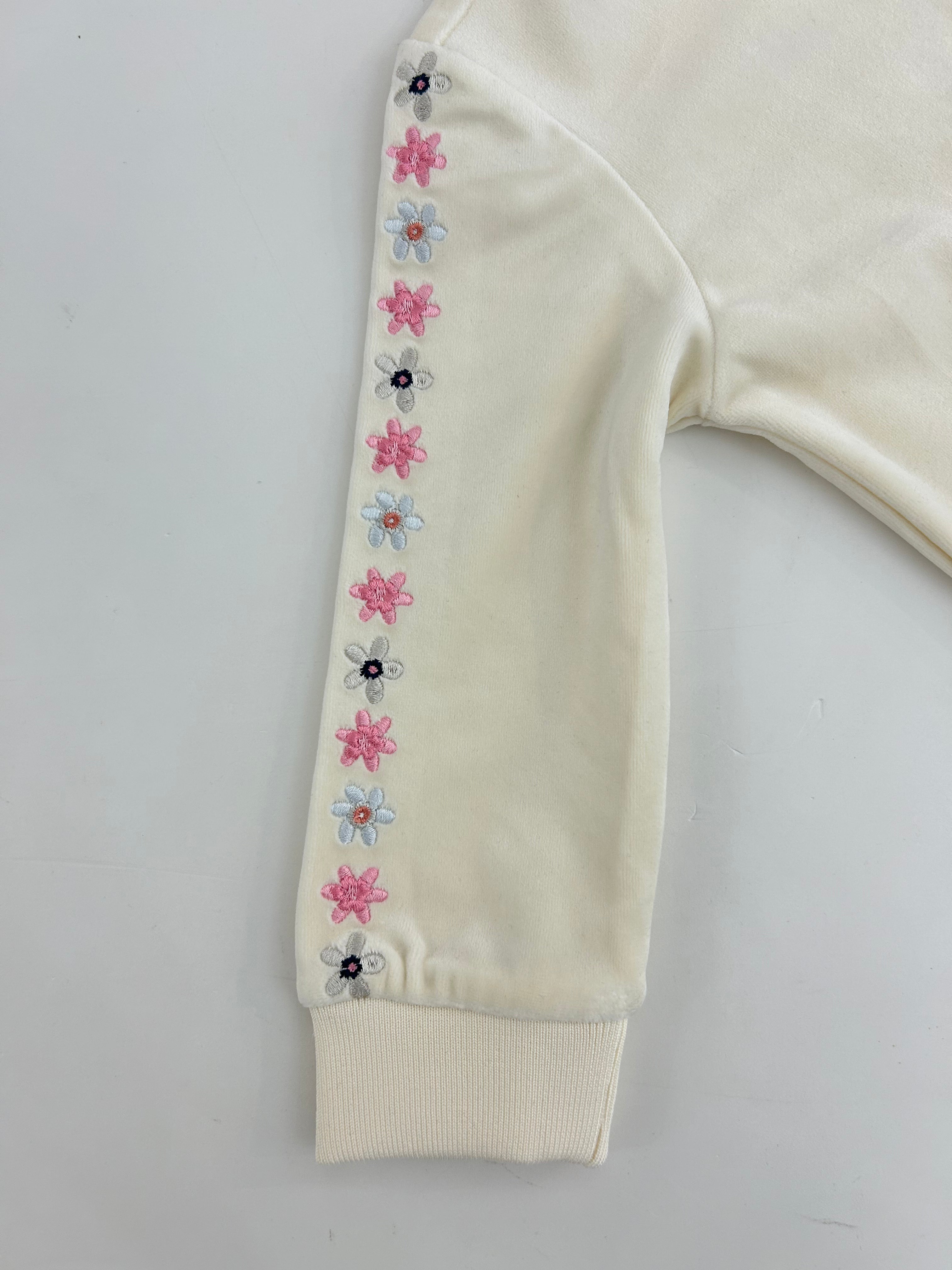 Felpa con zip ricami fiori e logo