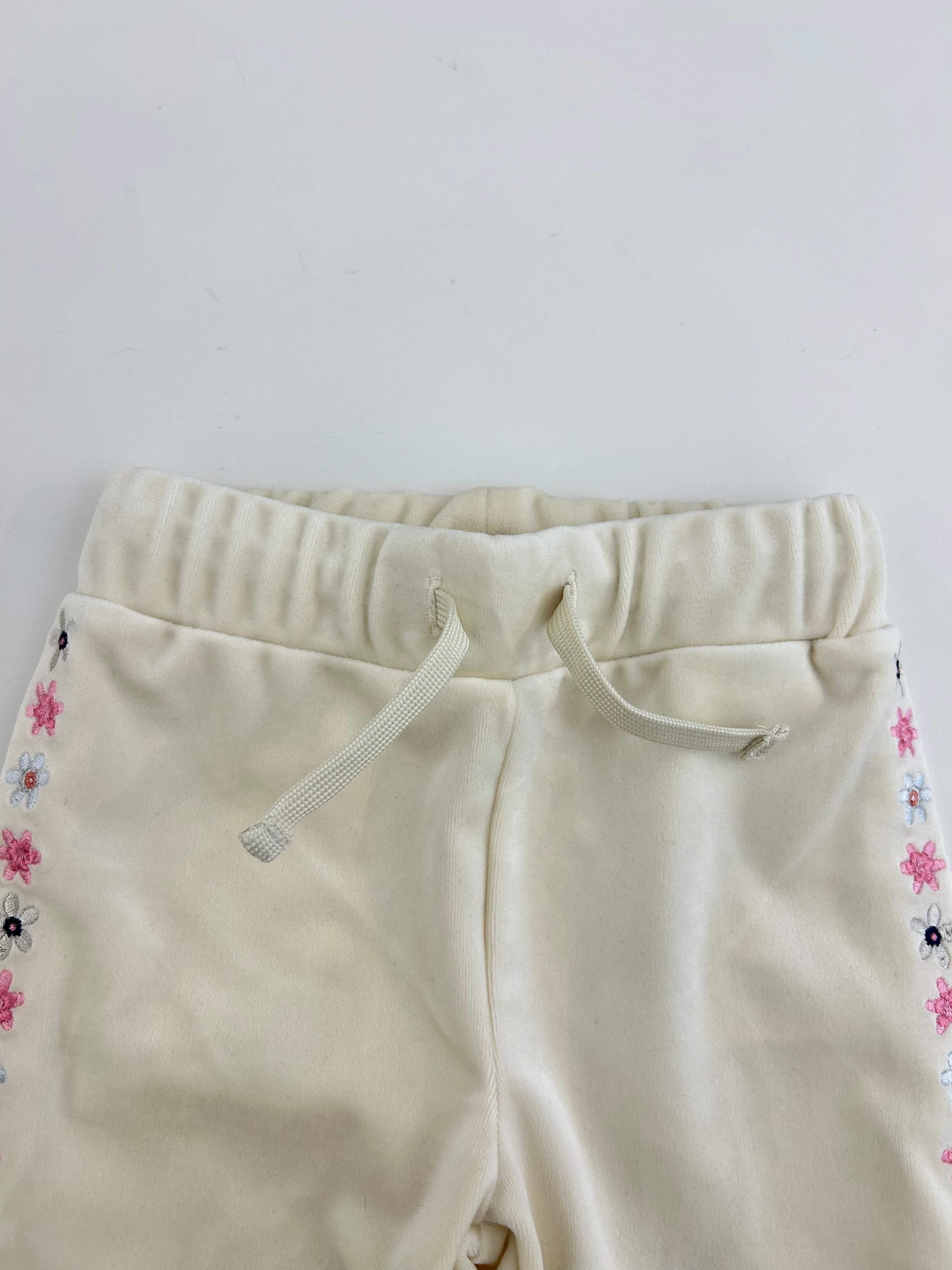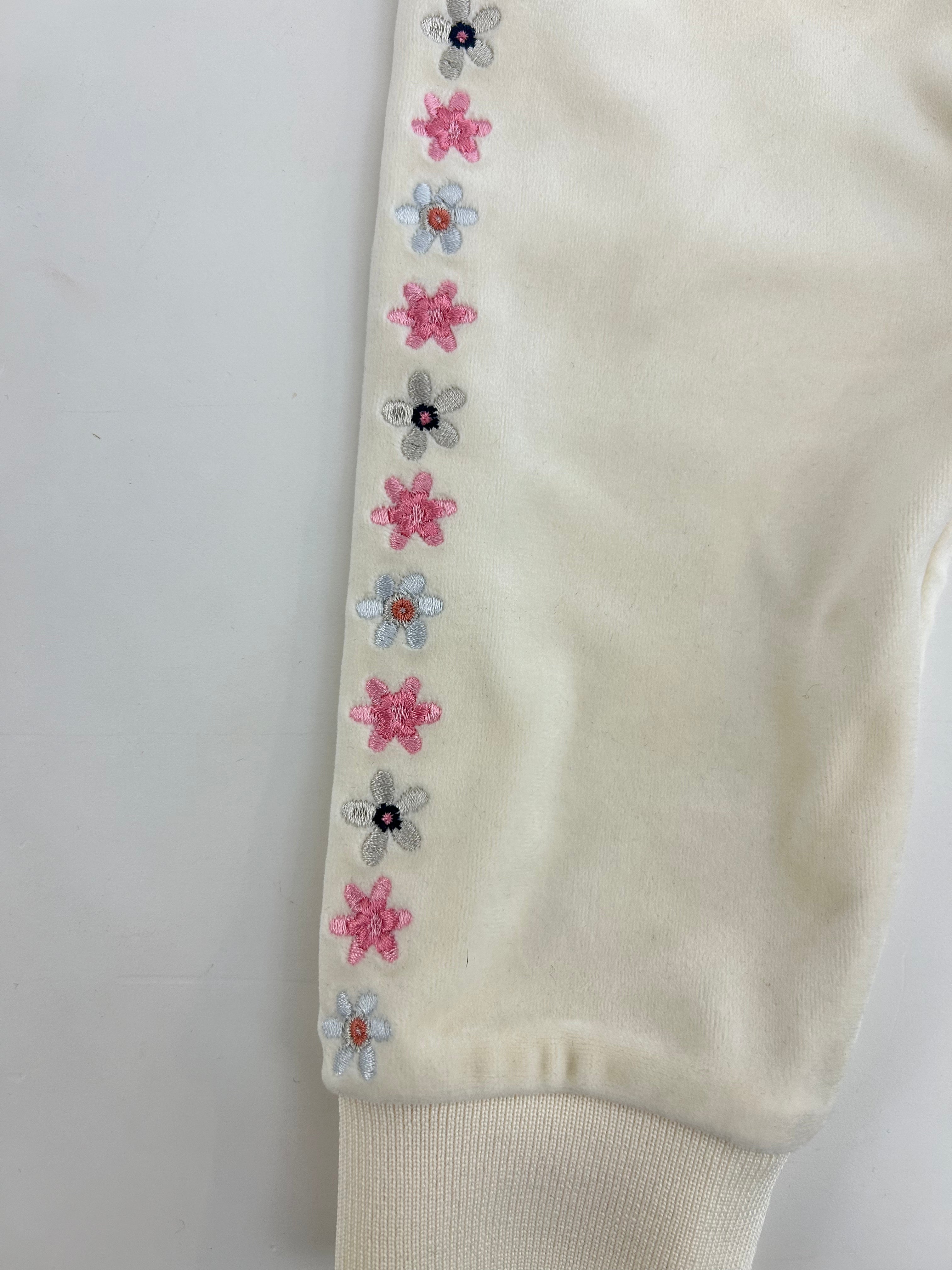 Jogger ricami fiori e logo