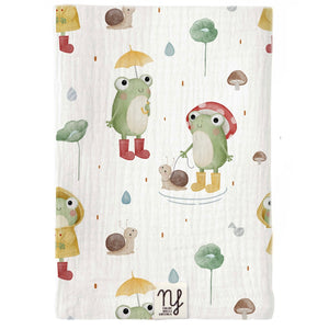 Mussola fantasia froggy perfetta per essere utilizzata er proteggere la mamma durante l’allattamento, come base d’appoggio per il cambio pannolino, come proteggi spalla in caso di rigurgito, oppure come asciugamano o copertina leggera, e per proteggere il bambino dallo sfregamento se appoggiato ai seggiolino auto o passeggini. Made in Italy.