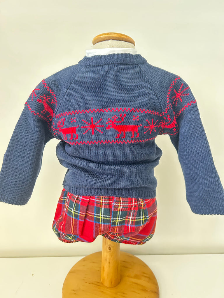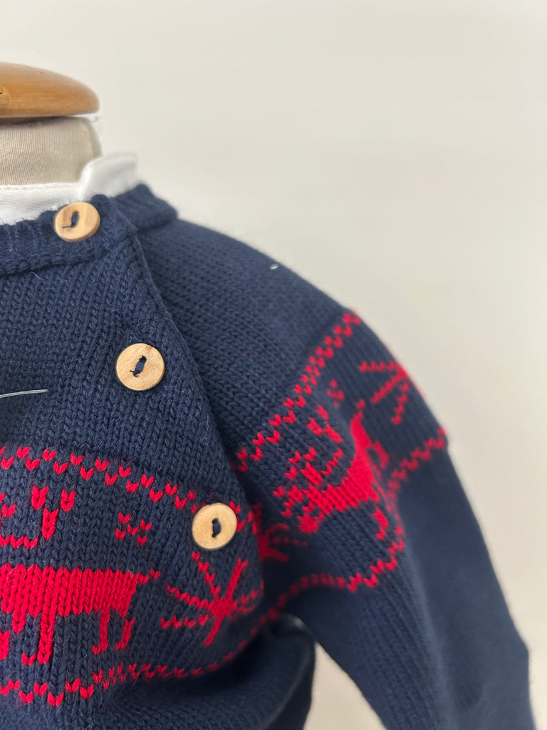 Pullover girocollo fantasia natalizia con apertura bottoni spalla